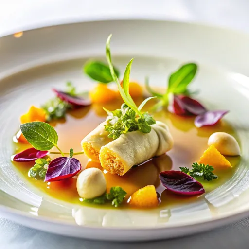 Mirisna i hranjiva povrtna ramen juha s đumbirskim bouillonom, rikolom i sušenim algama, nudi bogatstvo okusa i tekstura.